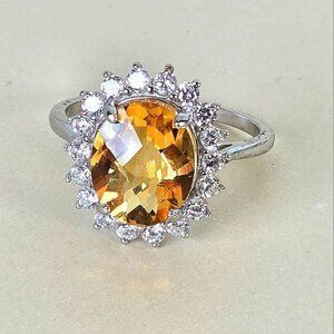 925 Sterling Silver Ring Sz 6.75 with Natural Citrine 12x10mm & CZ