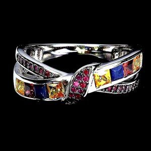 925 Sterling Silver Ring Sz 6.75 with Natural Sapphire & Ruby Gems