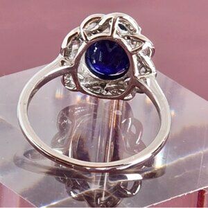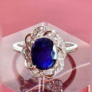 925 Sterling Silver Ring Sz 7.5 with Natural 8x10mm Sapphire Gemstone & CZ