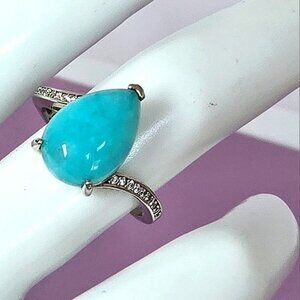 925 Sterling Silver Ring Sz 7.75 with Natural Amazonite & CZ