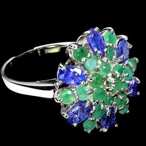 925 Sterling Silver Ring Sz 7.75 with Natural Tanzanite & Emerald Gemstones