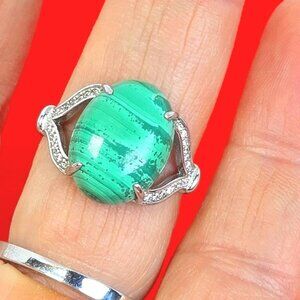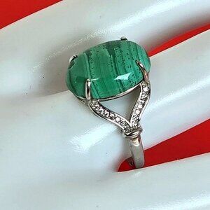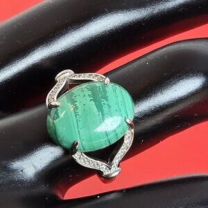 925 Sterling Silver Ring Sz 8.5 with Natural Malachite & CZ
