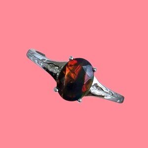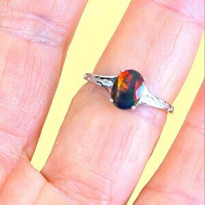 925 Sterling Silver Ring with Natural Black Opal 8x6mm