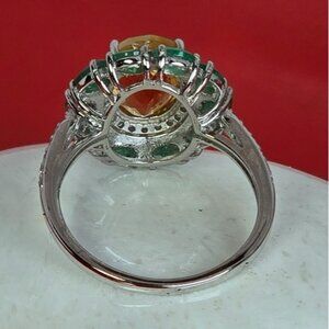 925 Sterling Silver Ring with Natural Citrine 8x10mm & Emerald Gems