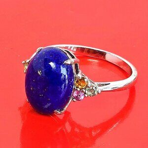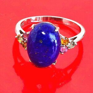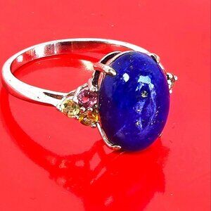 925 Sterling Silver Ring with Natural Lapis Lazuli & Tourmaline Gems