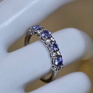 925 Sterling Silver Ring with Natural Tanzanite & CZ