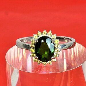 925 Sterling Silver Ring with Naturatl Chrome Diopside & Sapphire Gems