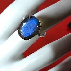 925 Sterling Silver Ring with Oval Natural Labradorite 1.3x1.7cm Gemstone
