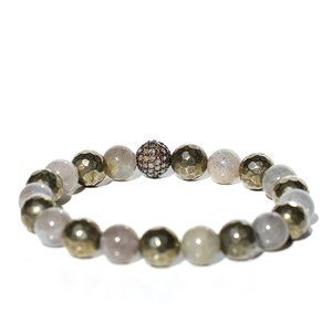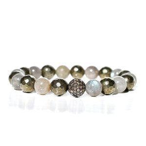 925 Sterling Silver Rose Cut Natural Diamond/Labradorite Pyrite Stretch Bracelet