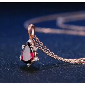 Elegant 925 sterling silver ring plated in 18K rose gold, featuring a natural garnet in a prong-set teardrop design. Adjustable fit (Size 7–9), nickel-free and hypoallergenic. Perfect for weddings, anniversaries, or thoughtful gifts. NGSTC certified fine jewelry.