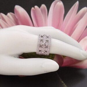 925 Sterling Silver Round Shape Clear Zircon Gemstone Ring Size 7 Women Gift