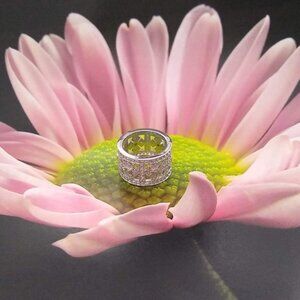 This sterling silver ring is a beautiful piece of fine jewelry featuring a round-shaped clear zircon gemstones.