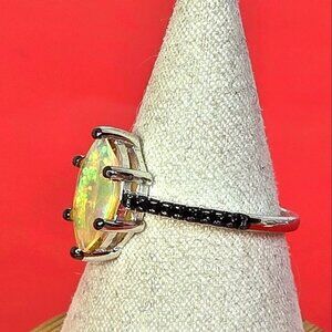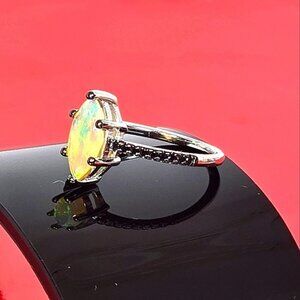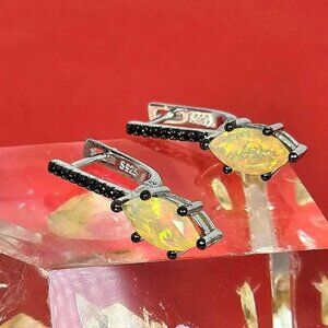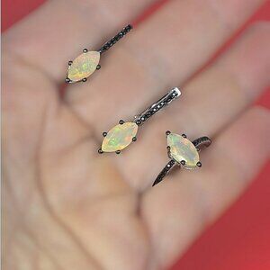925 Sterling Silver Set: Earrings & Ring Sz 7.5 with Natural Ethiopian Fire Opal with Black Spinel