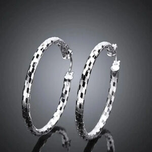 925 Sterling Silver Shiny Textured Round Hoop Earrings