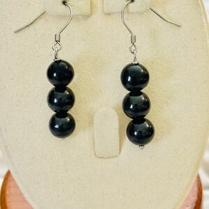 NWOT – 925 Sterling silver. Earrings are made w/genuine Shungite beads & set in solid 925 sterling silver w/rhodium plating to prevent tarnishing. Each earring has three beads going down.