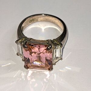 #CZRing #SterlingSilver #StatementRing #PinkStone #925Jewelry #ThreeStoneRing #GiftIdea #Size5Ring #ElegantJewelry