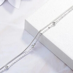 925 Sterling Silver Snake Chain & Bead Bracelet