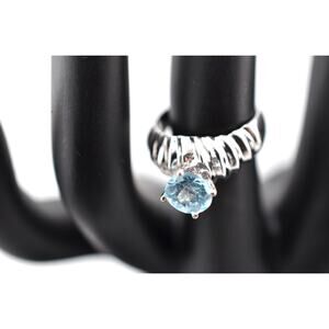925 Sterling Silver Solitaire Topaz Ring Size 5.75