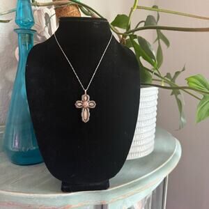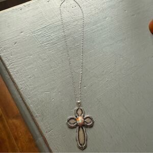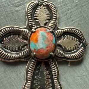 925 Sterling Silver Spiny Oyster Turquoise Cross Pendant Necklace