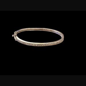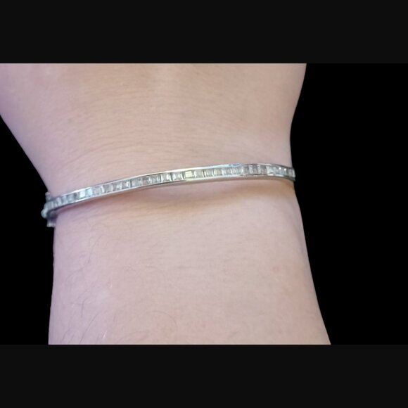 925 Sterling Silver Square Cut Clear CZ 7" Hinged Bangle Bracelet