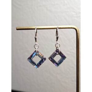 925 Sterling Silver Square Shape Austrian Crystal Drop Lever Back Earrings. Pre-owned, these earrings are in excellent condition.