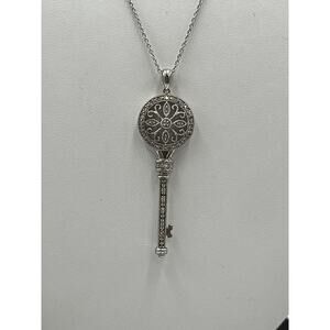 925 Sterling Silver Stamped Genuine Diamonds Floral Key Motif Chain Necklace