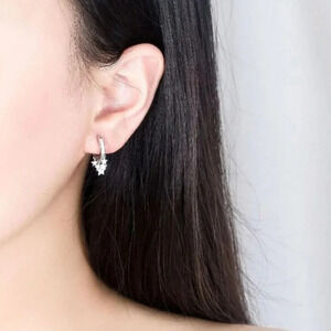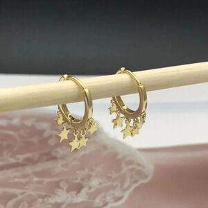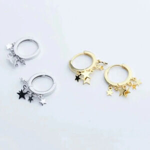 925 Sterling Silver Star Huggie Hoop Earrings Tiny Star Hoops Gold or Silver