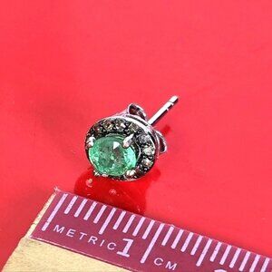 925 Sterling Silver Stud Earrings with Natural Emerald 6x5mm & Natural Diamonds