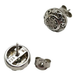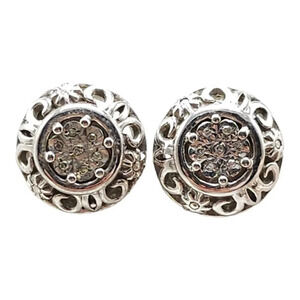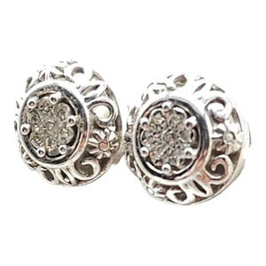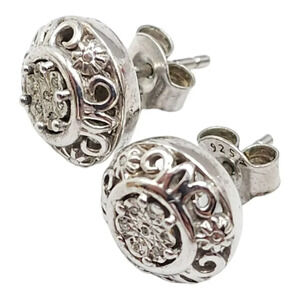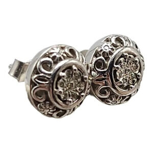 Vintage 925 Sterling Silver Studs Diamond Chip Dome Earrings Filigree Butterfly Closure