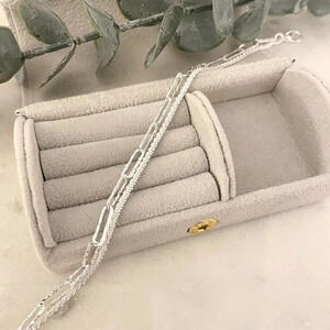 925 Sterling Silver Thin Multi Layer Bracelet Sequin Paperclip Link Bracelet
