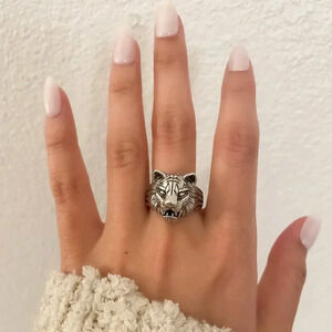 925 Sterling Silver Tiger Ring Unisex Cool Chunky Ring Bold Thick Ring