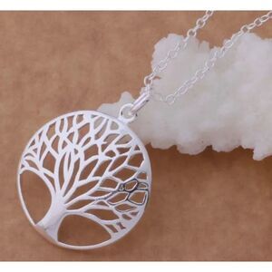 .925 Sterling Silver Tree of Life Round Pendant 16" Fine Chain Necklace