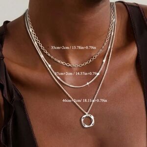 925 Sterling Silver Triple Layer Chain Pendant Necklace Set Classic Adjustable