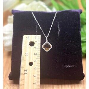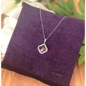 A single row of sparkling white quartz crystals surrounds the clover-shaped stone, adding a refined shimmer that enhances its charm. This thoughtfully designed necklace is lightweight and allows more light to pass through the gemstone, enhancing its natural brilliance and making it ideal for daily wear.
