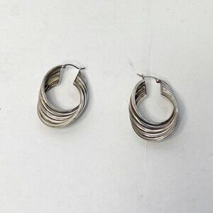925 Sterling Silver Twisted Multi Tube Round Hoop Earrings