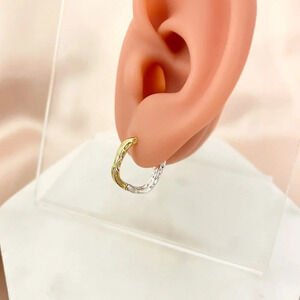 925 Sterling Silver Two Tone Earrings Gold & Silver Hoops Geometric Earrings