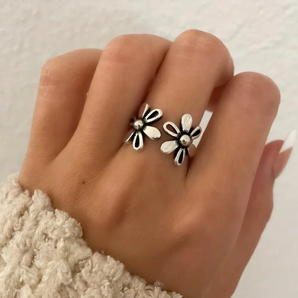 925 Sterling Silver Vintage Flower Ring Dainty Minimalist Flower Ring