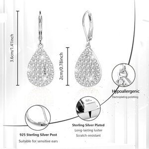 925 Sterling Silver Waterdrop Trendy Hypoallergenic Leverback Earings for Women