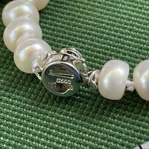 925 Sterling Silver White Freshwater Pearl Necklace With Flower Shaped Clasp