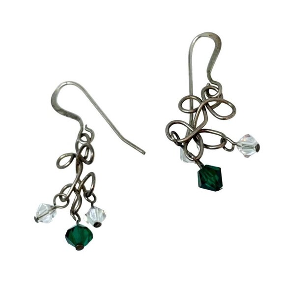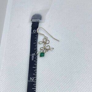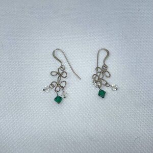 925 Sterling Silver White Green Crystal Wire Dangle Drop Earrings Hook Closure