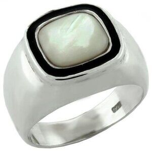 925 Sterling Silver White Jade Signet Ring Black Enamel Size 5