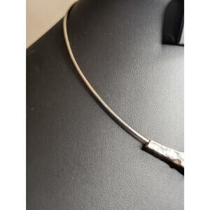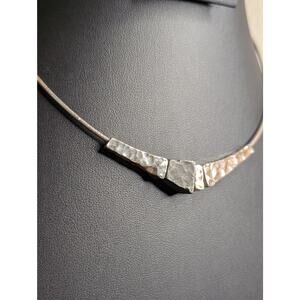 Modernist 925 Sterling Silver Wire Cable Multi Color/Finish Hammered Bead 16" Necklace. Beads are high polished, gray no polish and light gold polished. Unique. Beads slide. Pre-owned, this necklace is in excellent condition.