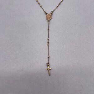 925 Sterling Silver Y Drop Lariat Necklace 17 Inches Gold Tone Holy Mary Christianity Faith Believe