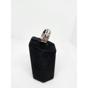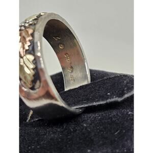 925 Sterling Silver and 12k Gold-Plated Accents Vintage Antiqued Ring Band Size