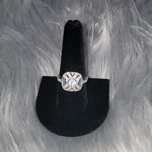 925 Sterling Silver with Blue Accent Stones, Size US 8