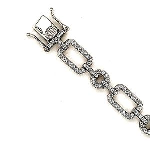 Fancy bracelet crafted 925 Sterling Silver with Rhodium plating, featuring link-shaped circles adorned with Round CZ Stones.
