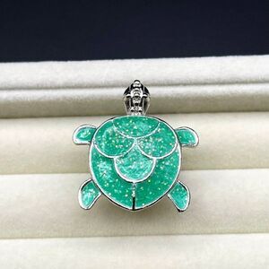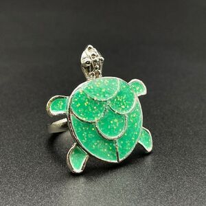 925 Sterling Silver with Glittery Green Enamel Sea Turtle Statement Ring Size 8