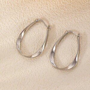 Elevate your accessory game with these chic twisted oval hoop earrings. Crafted from high-quality 925 Sterling silver, their unique design features a subtle twist for a modern and sophisticated look.
