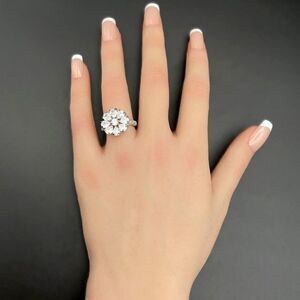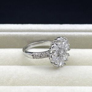 925 Sterling Silver with White Diamond Cubic Zirconia Flower Ring Size 10