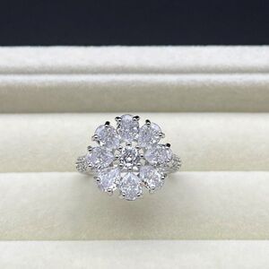 S925 Sterling Silver Plated Flower Ring Embellished with Teardrop and Round Cut White Diamond Cubic Zirconia